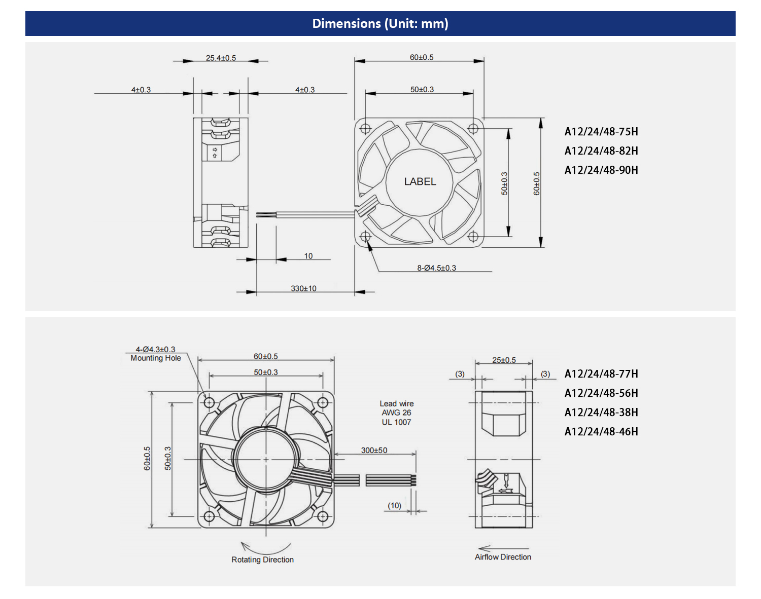 Life Time: 25000 Hours Sleeve bearing, 50000-70000 Hours Ball bearing