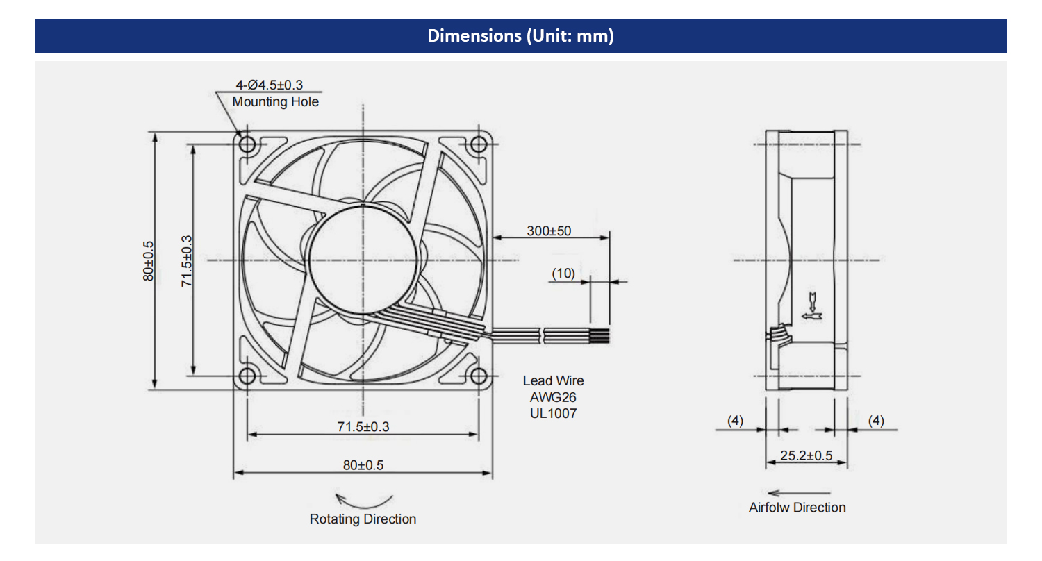 Life Time: 25000 Hours Sleeve bearing, 50000 Hours Ball bearing