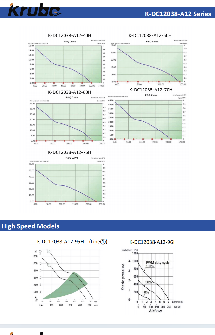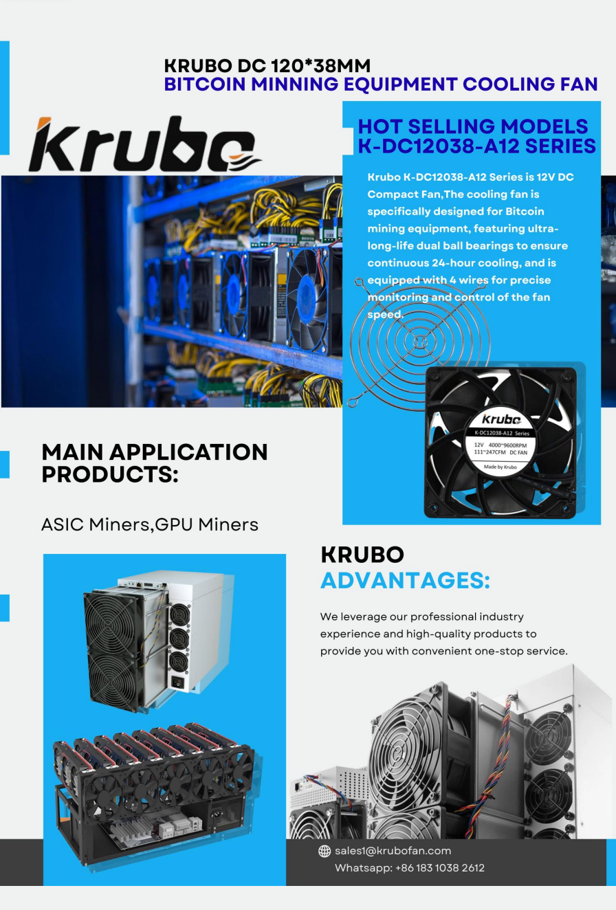 Krubo DC Compact Fan K-DC12038-A12 Series 12V for Bitcoin Miner