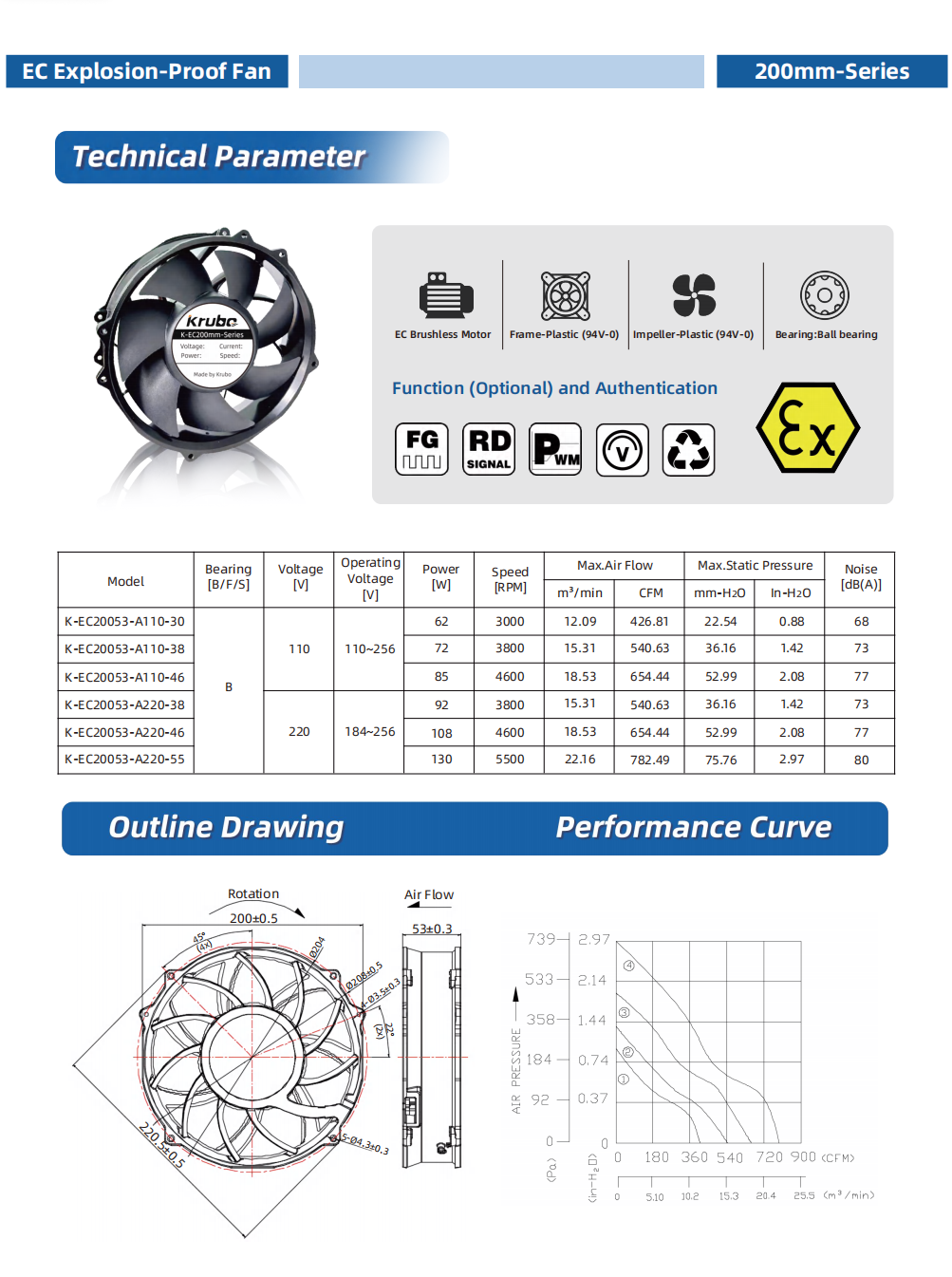 Krubo Ec Explosion-Proof Fan K-E20053-A220-38 220V 3800rpm Used in Energy Storage System
