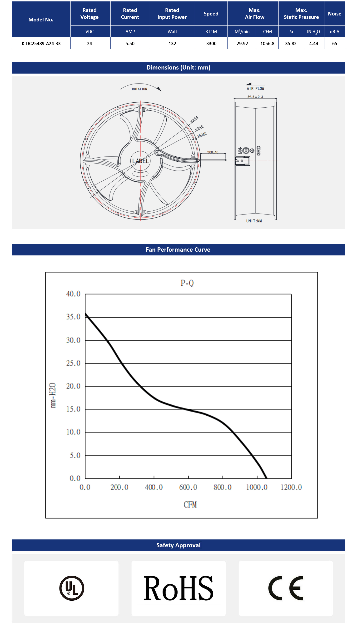 Fan blade:thermoplastic black /PA66+25% GF of UL 94-V0