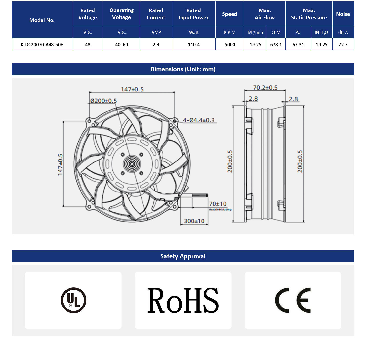 Safety Approval:UL,CE,ROHS